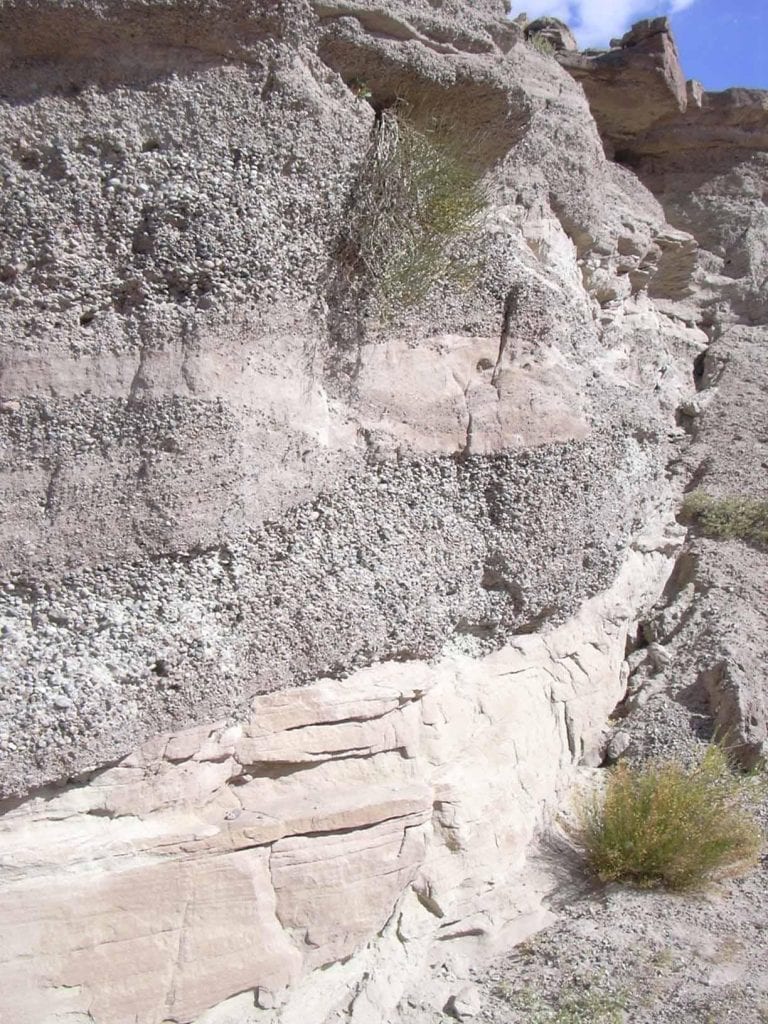 The sediment was very telling. This was once a river. One look at the sediment told us that. There were water worn rocks and pebbles in varying layers. It was the bottom of a river and these were point bars within the river. The pebble layers were intermixed with sandy layers. Some were easy to get through and some were a hard conglomerate. But the big thing is that this was a river deposition. NO DOUBT. Walking around the large sandstone and conglomerate outcroppings we could see bone weathering out. The Vertebra – verts – were in beautiful cross section, lovely, but much was missing due to erosion and — rock hounds— but there were bones.