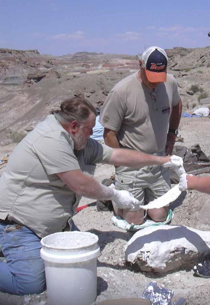 Once it dries, the jacket is rolled over. This is critical. If the bone was not undercut enough or the jacket strong enough the bone may shatter or pieces may break off and stay in the original matrix. When the bone is rolled, the underside is examined for evidence of bone and then the plaster jacket process is repeated. Ta Da done !!!